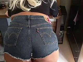 Curvy Girl In Tight Shorts Gets Cum In Pussy And Ass