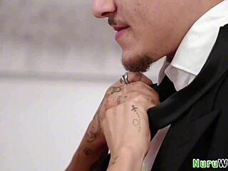 दोस्त, यह बस्टि मसाजिस्ट शाई क्लाइंट को टीज करती रहती है जब तक पाउंड नहीं हो जाता!